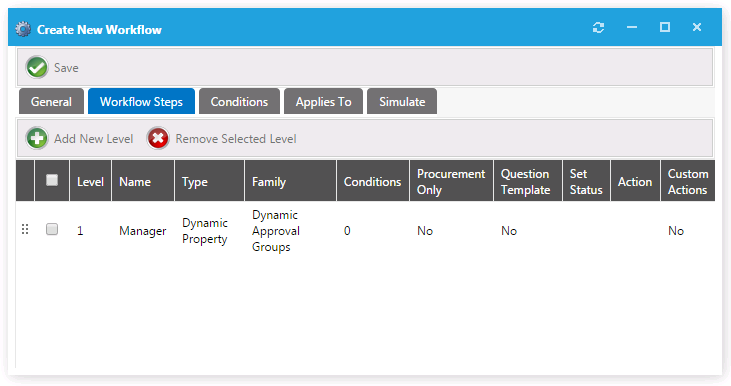 16. Click Save . The new approval workflow is now listed on the Workflows View .
