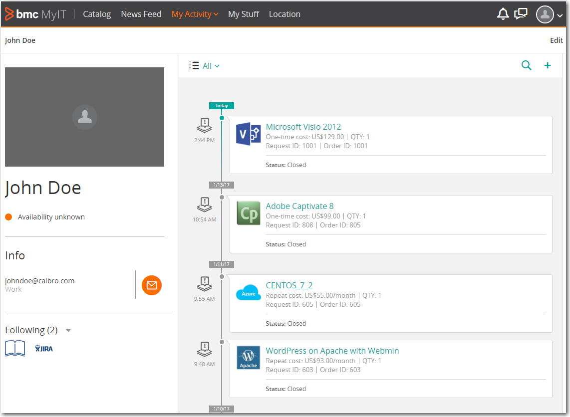 - Click on the catalog item that you want to request. Detailed information about that catalog item is listed.