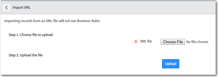 - Under Related Links , click Import Update Set from XML . The I mport XML page opens.