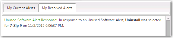 - Return to the My Apps tab and open the My Resolved Alerts tab, where the alerts that you just resolved are now listed.